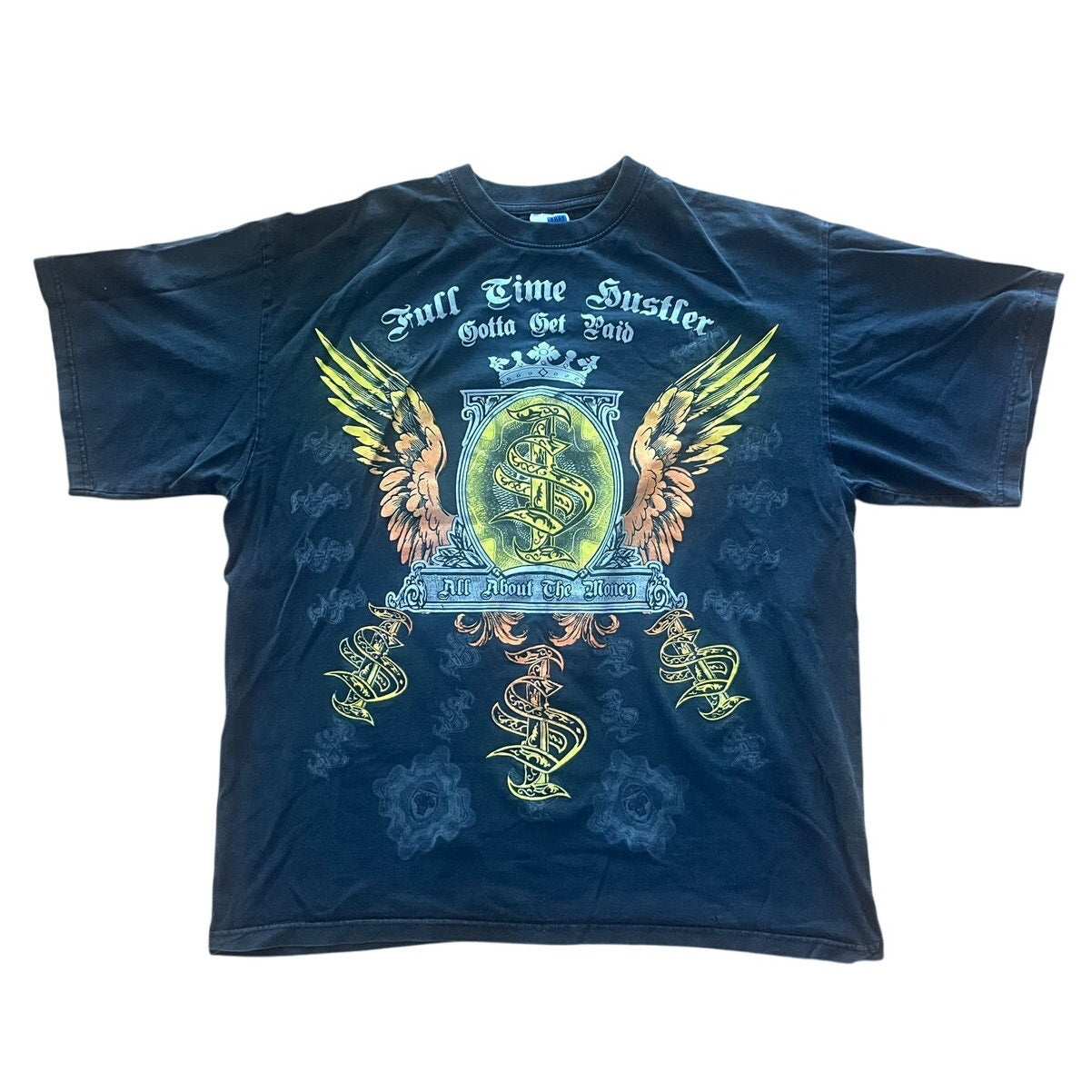 Super heavy weight 100% Cotton Y2K Phat Doc Vintage Full Time Hustler Gotta Get Paid Hip Hop Rap Shirt Black Sz 3XL